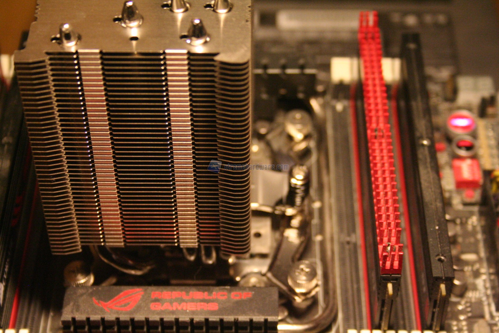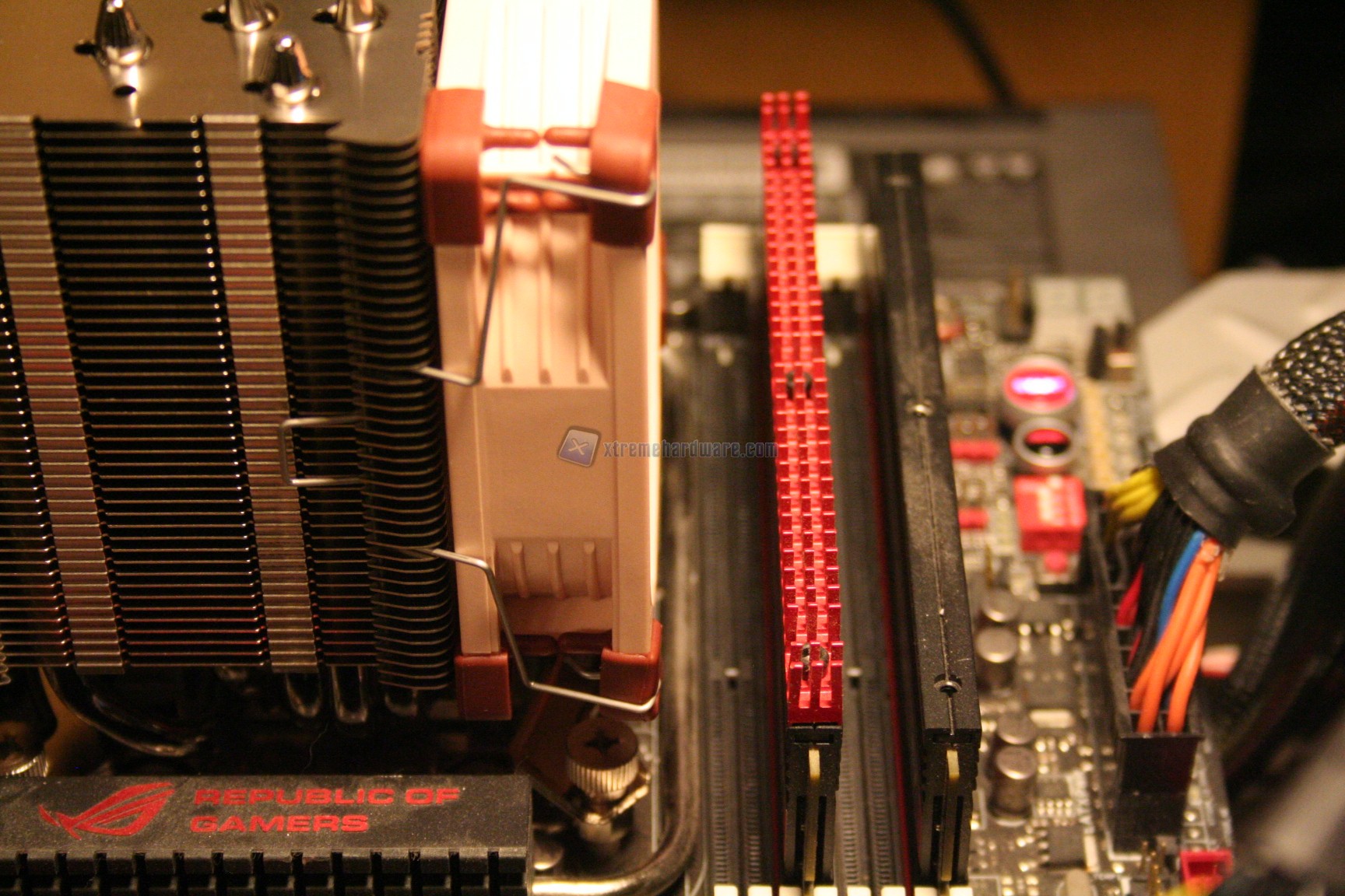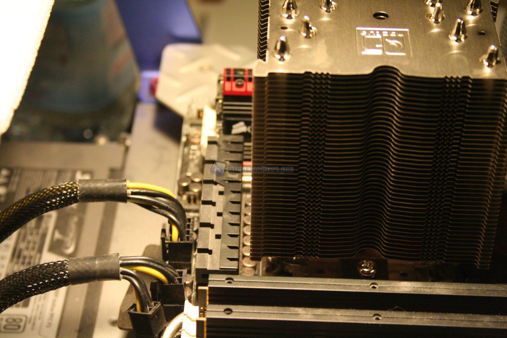 La compatibilità con RAM ad elevato profilo è davvero ottima, grazie alla stessa progettazione del radiatore. Il dissipatore presenta un’altezza della ventola decisamente bassa rispetto alla scheda madre, per via del diametro, ma è possibile rialzarla, o sostituirla con una eccellente Noctua NF-F12 Focused Flow.