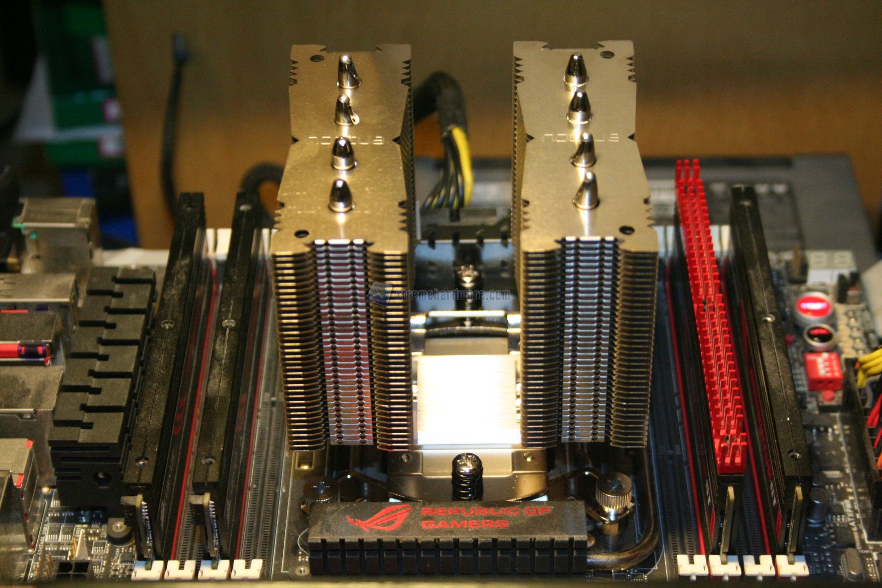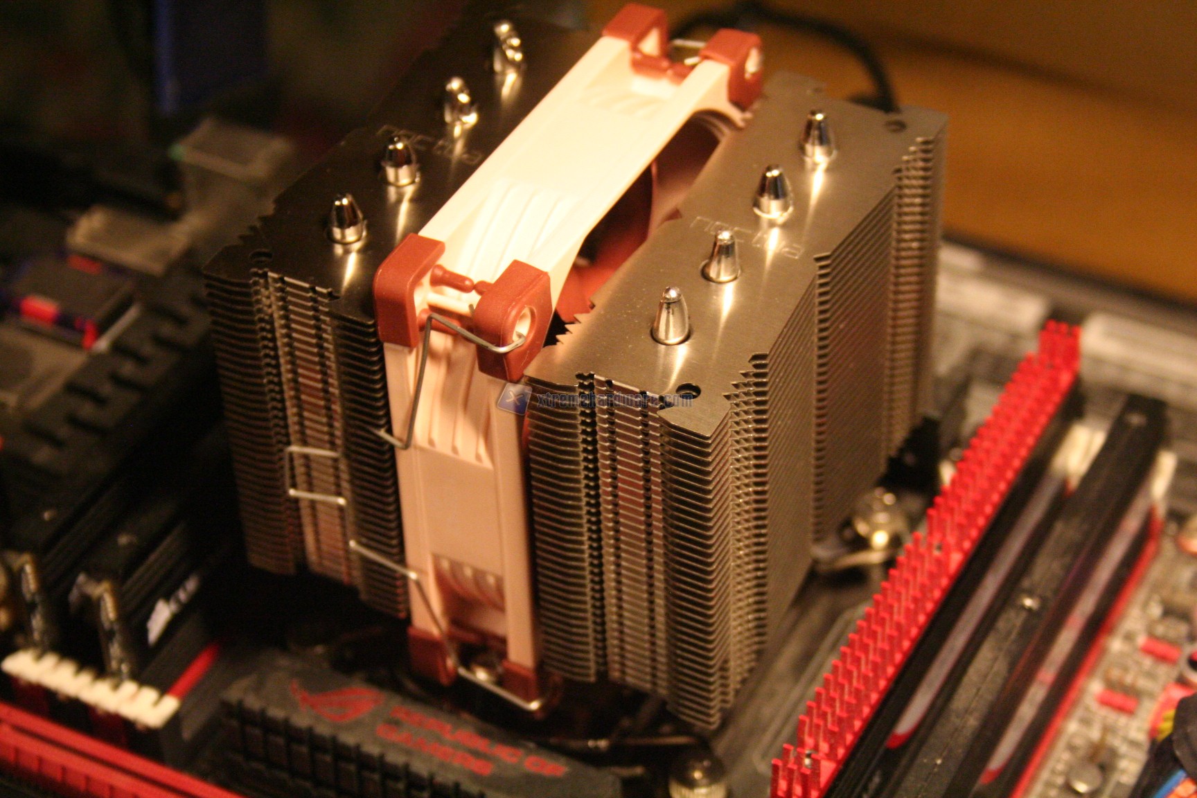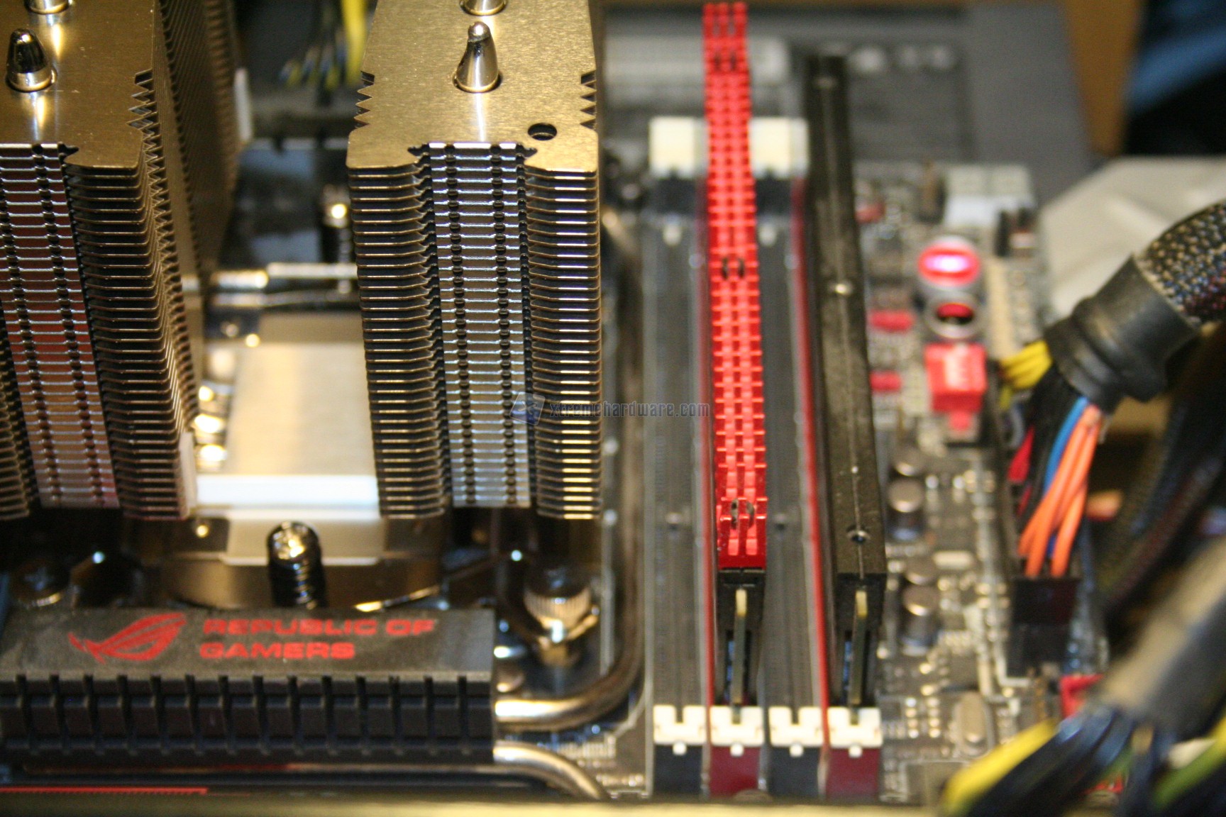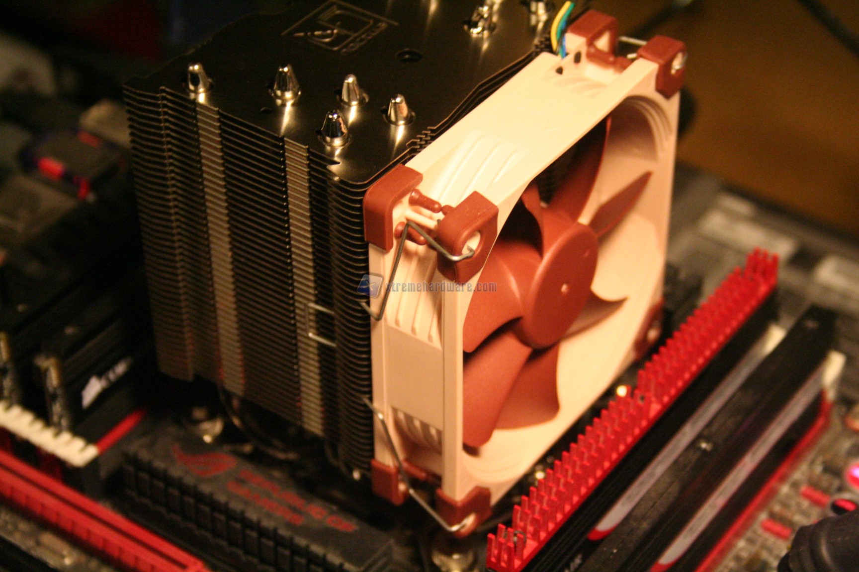 La compatibilità con RAM ad elevato profilo è davvero ottima, grazie alla stessa progettazione del radiatore. Il dissipatore presenta un’altezza della ventola decisamente bassa rispetto alla scheda madre, per via del diametro, ma è possibile rialzarla, o sostituirla con una eccellente Noctua NF-F12 Focused Flow.