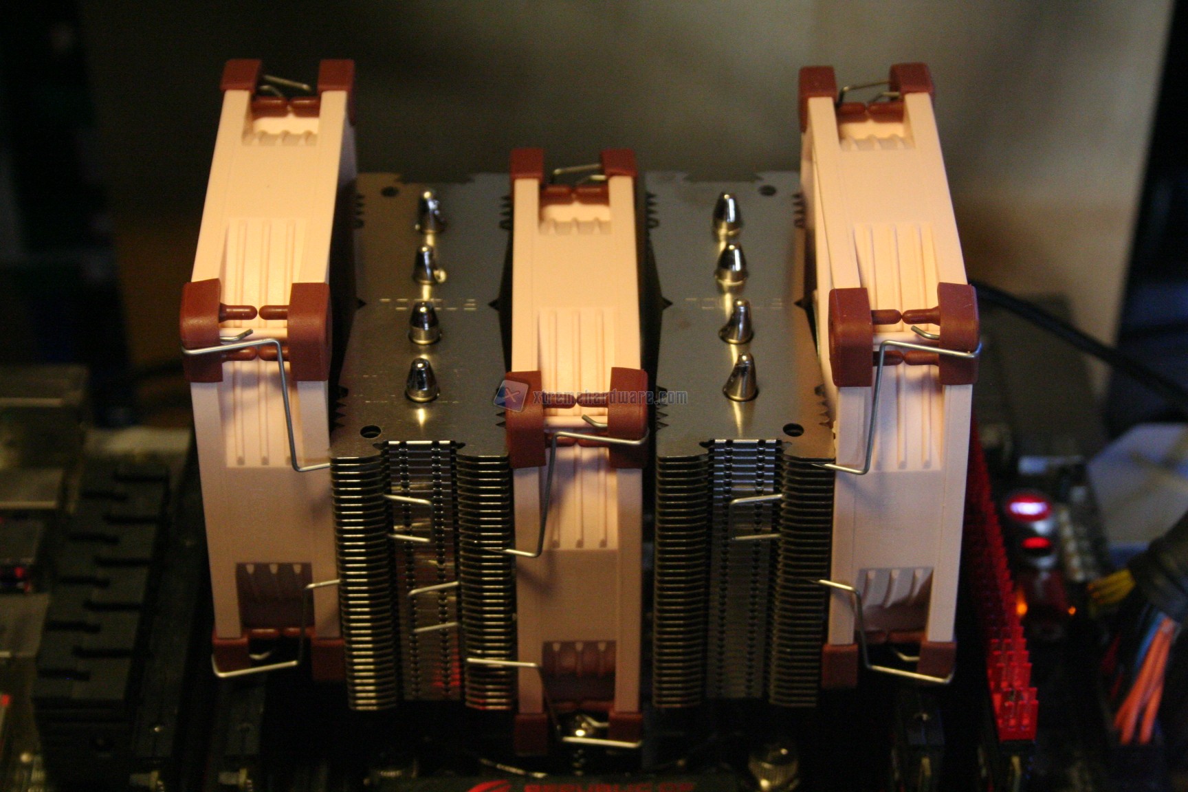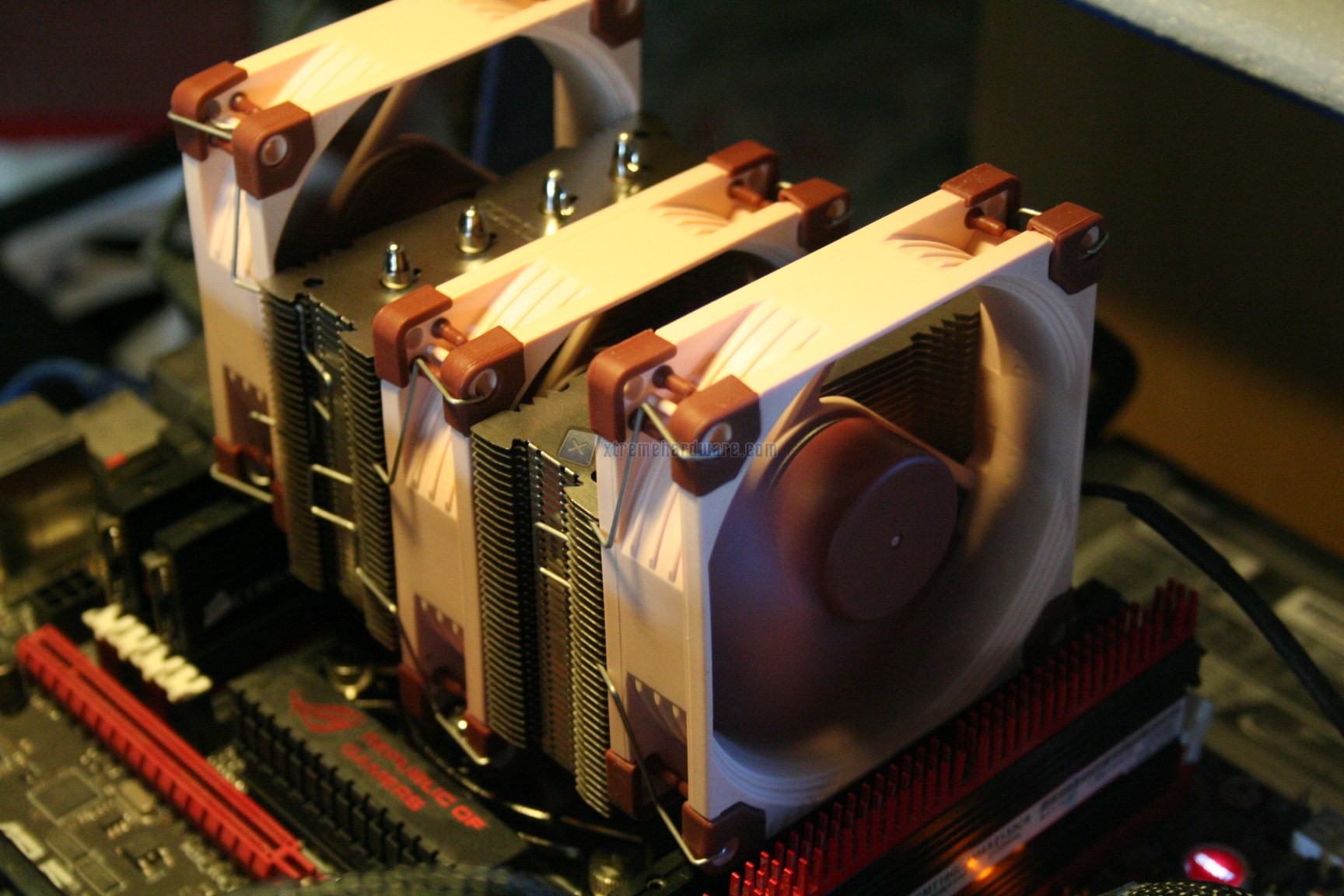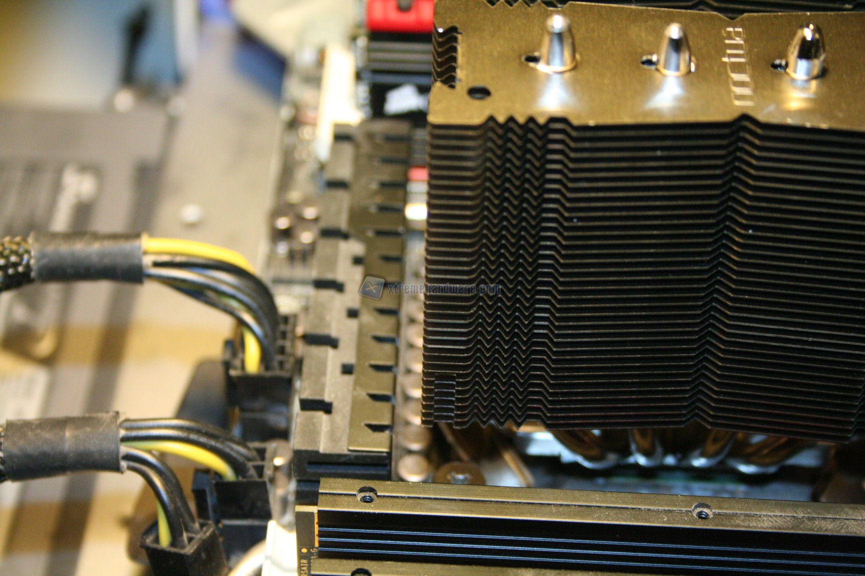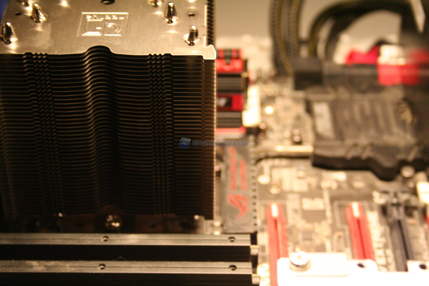 Su una RIVE X79, in configurazione a singola ventola non ci sono problemi, qualora però fossero utilizzate una o due ventole sarebbe necessario rialzarle, perdendo quindi efficienza di dissipazione, ed aumentando la tolleranza in altezza. Date le dimensioni complessive non si può pretendere altro.