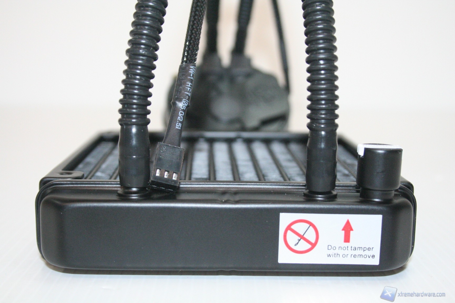 Sebbene la tipologia delle tubazioni possa sembrare identica alle soluzioni H50, ciò è vero in parte poiché la lunghezza è quasi due volte tanto, ed inoltre la flessibilità sembra essere leggermente migliore, per via di una più robusta implementazione delle tubazioni ruotabili. Il diametro dei tubi, reale, è leggermente inferiore a quello che potete osservare direttamente all’esterno, anche se non è chiaro se sia presente una tubazione interna che non permetta quindi al fluido interno di sbattere contro le insenature radiali del tubo stesso. Sarebbe necessario segarlo in due, e si comprende chiaramente che ciò non è ovviamente possibile ai fini della recensione. Facciamo presente che c’è un meccanismo di inserimento dell’acqua nel radiatore, tramite un tubo collettore svitabile. Qualora fosse aperto però la garanzia verrebbe invalidata e data la caratteristica di questi modelli che permette la mancanza di una periodica manutenzione, è assolutamente sconsigliabile aprirla. E’ possibile che serva per fini di riparazione o test pre-vendita o assemblaggio.