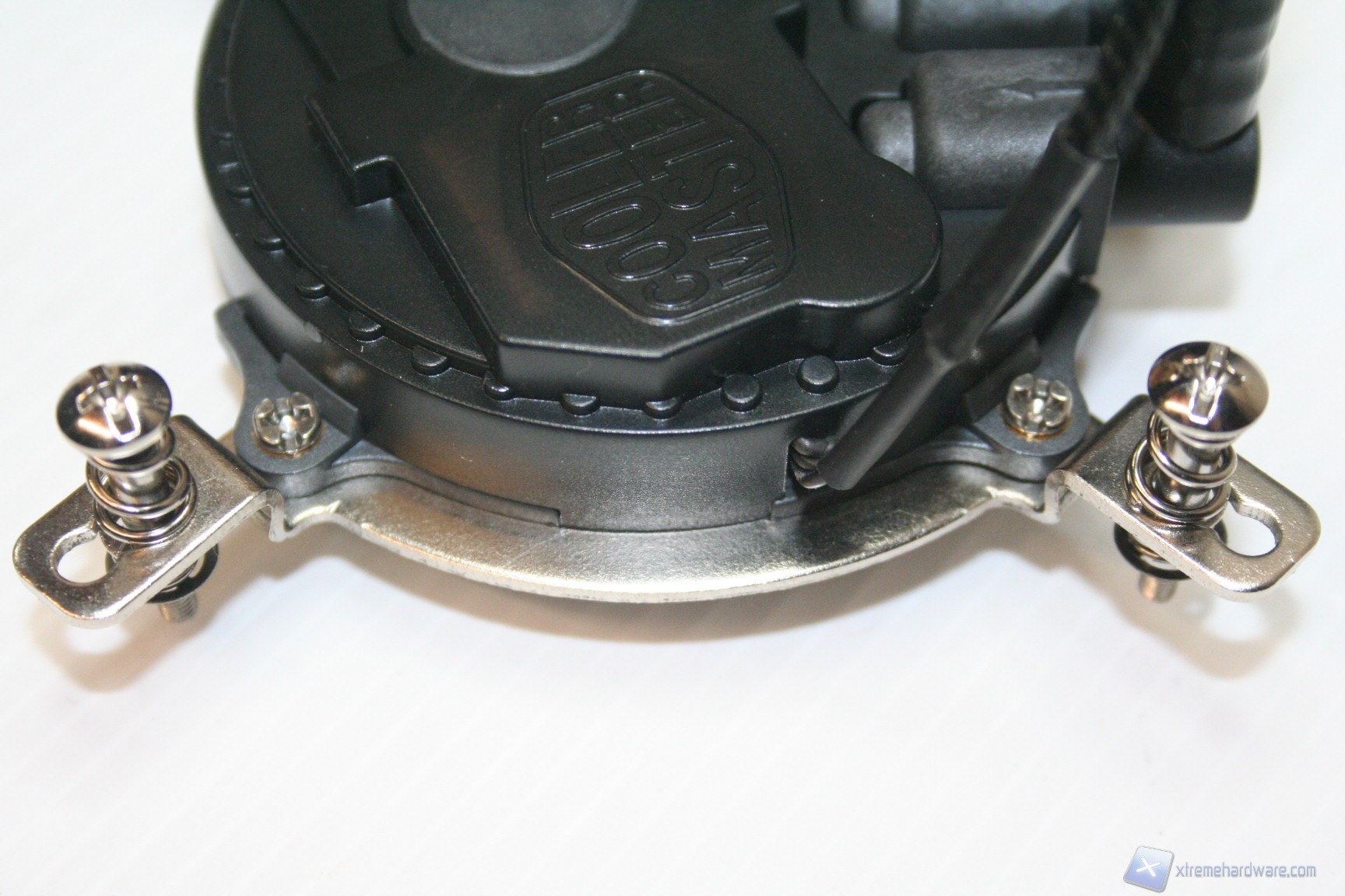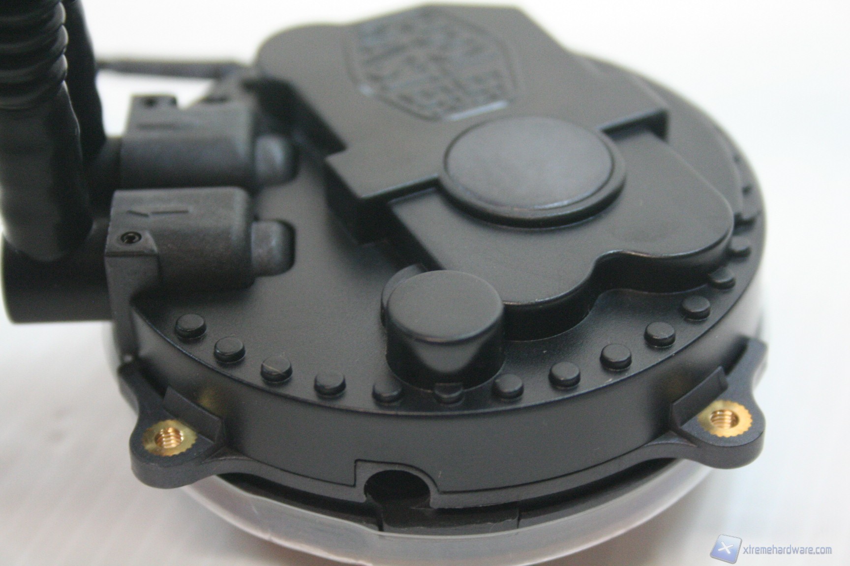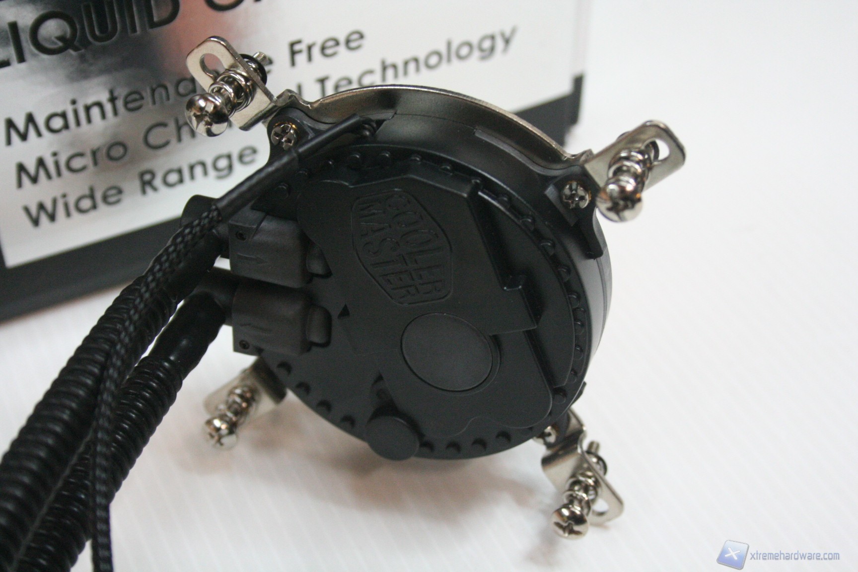 Rispetto ad altre soluzioni il combo waterblock-pompa presenta un design originale, con logo Cooler Master e diversi elementi decorativi in rilievo, anche se la prima impressione, perlomeno dalle fotografie, è di avere davanti un piccolo giocattolino di dubbia qualità. E’ vero il contrario fortunatamente, soprattutto osservando da vicino le finiture, la struttura del sistema di blocco e i dadi di ritenzione sulla base.